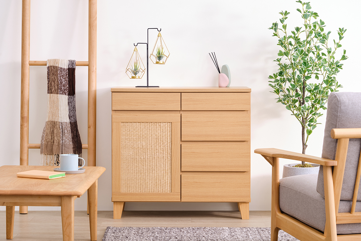 •ラタンや竹素材の家具をアクセントに加えると、自然の風合いが生まれます。