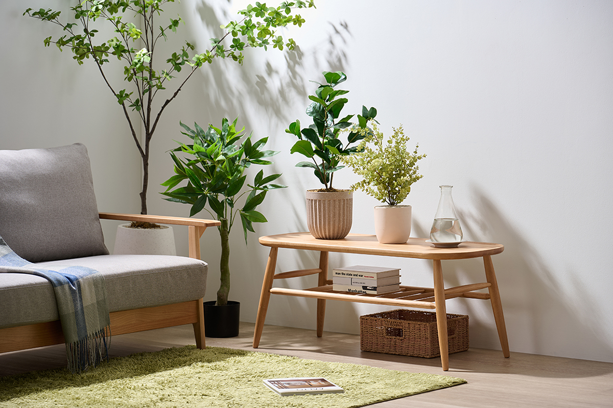 家具の上や周りに植物を取り入れると、春らしい生命感が加わります。